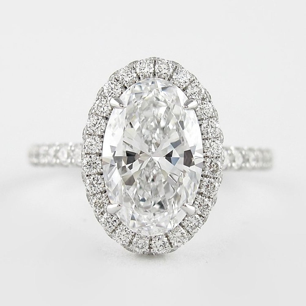 Moissanite Diamond Oval Cut Hidden Halo Wedding Ring