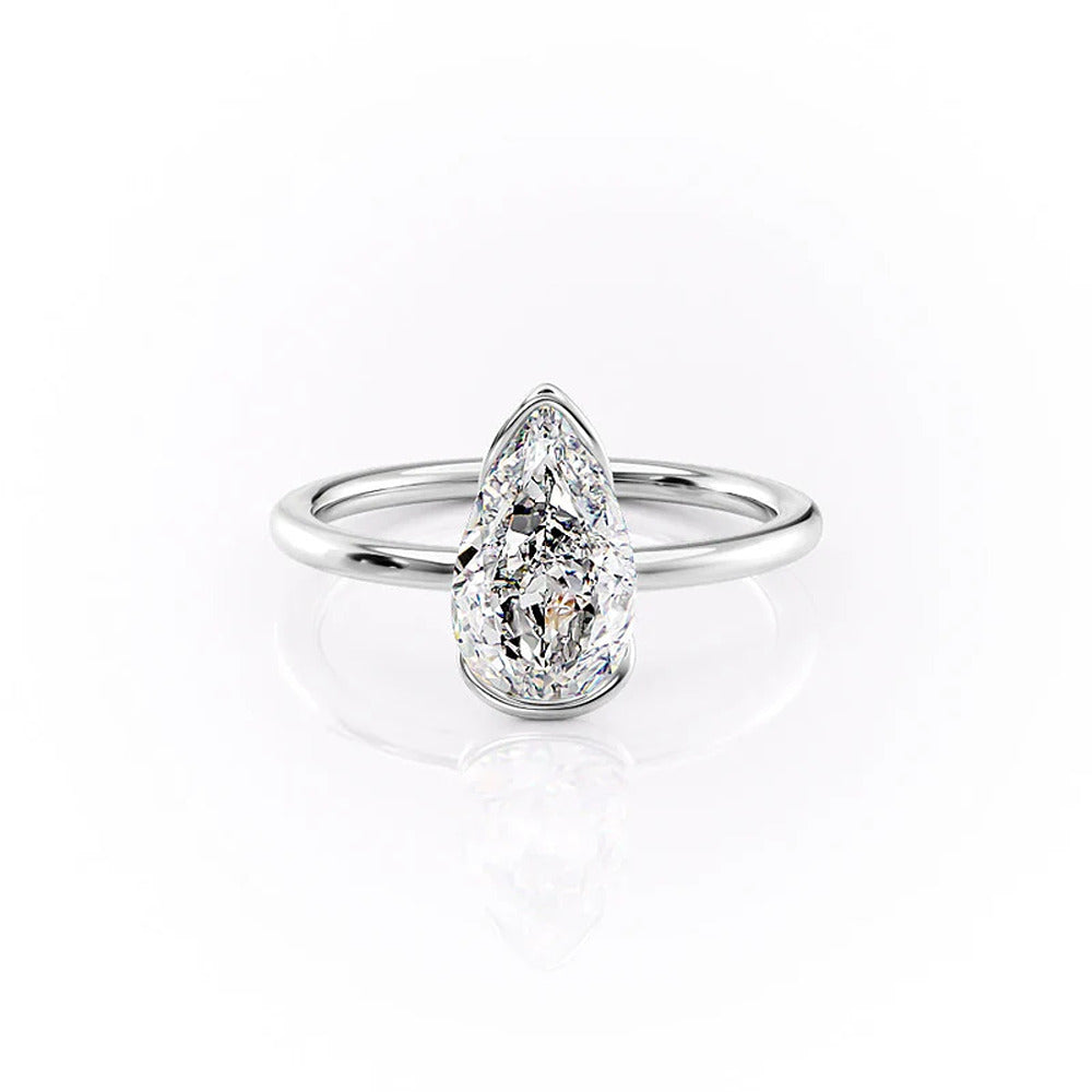 Half Bezel Pear Cut Solitaire Moissanite Wedding Proposal Ring