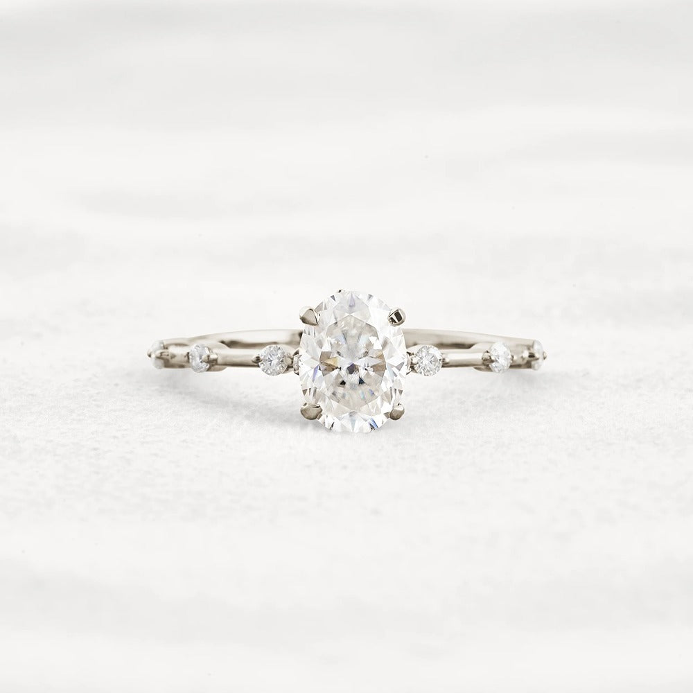 Hidden Accent Oval Cut Moissanite Wedding Ring