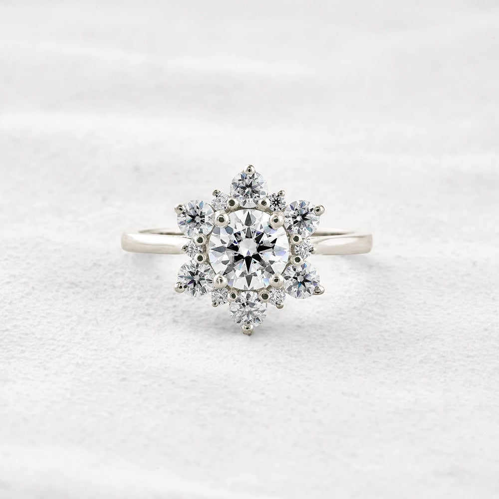 Round Cut Floral Halo Moissanite Diamond Wedding Ring