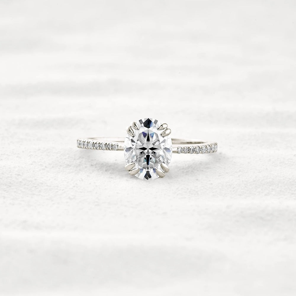 Double Claw Prong Oval Cut Pave Set Moissanite Diamond Ring