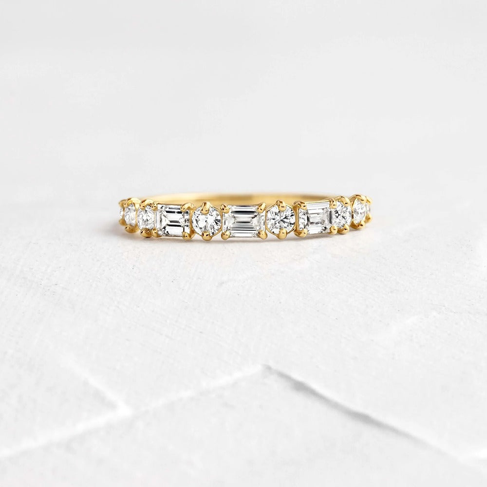 Half Eternity Round & Baguette Cut Moissanite Diamond Band