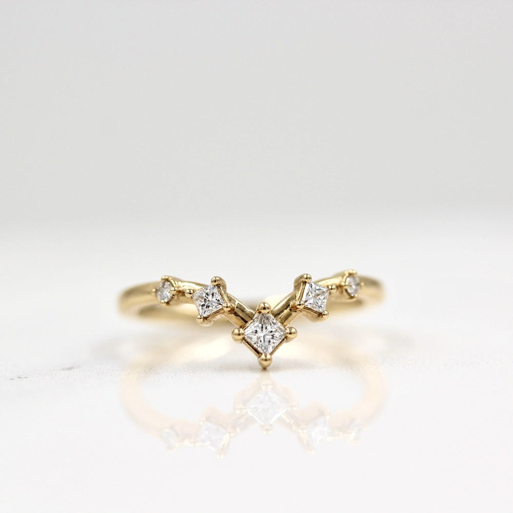 Marquise & Round Cut Moissanite Chevron Shape Wedding Band