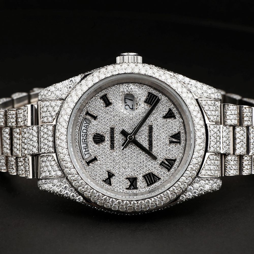 Stylish Moissanite Day Date Bust Down Fashion Watch For Men's