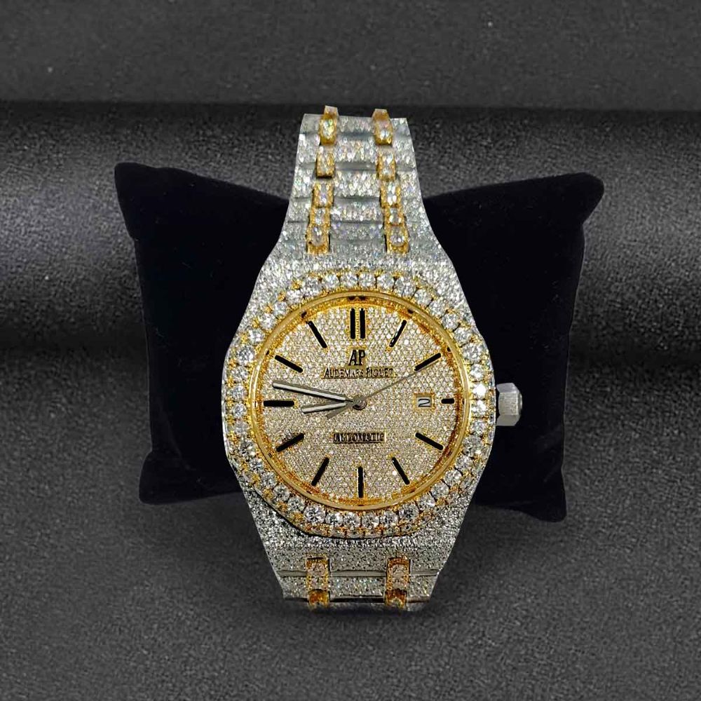 Dual Tone Fully Iced Out Moissanite Diamond Wrist Luxury Watch