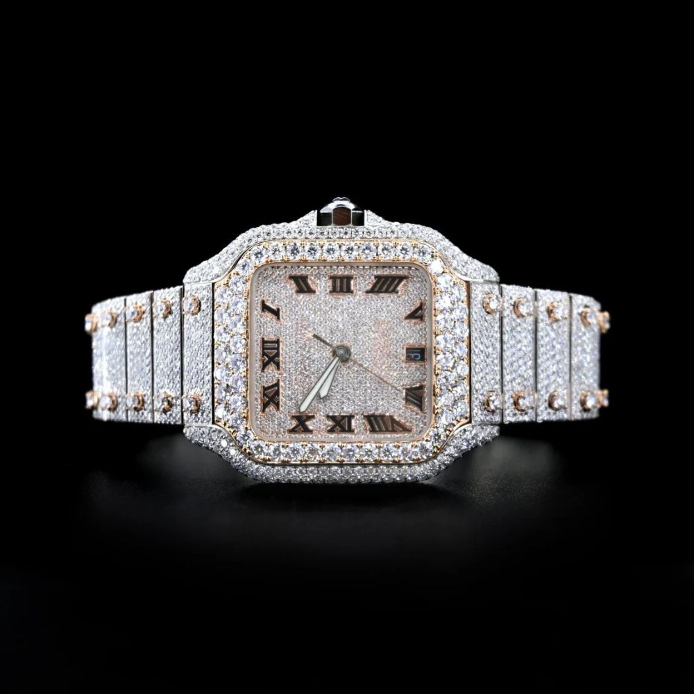 Dual Tone Fully Iced Out Moissanite Diamond Wrist Luxury Watch