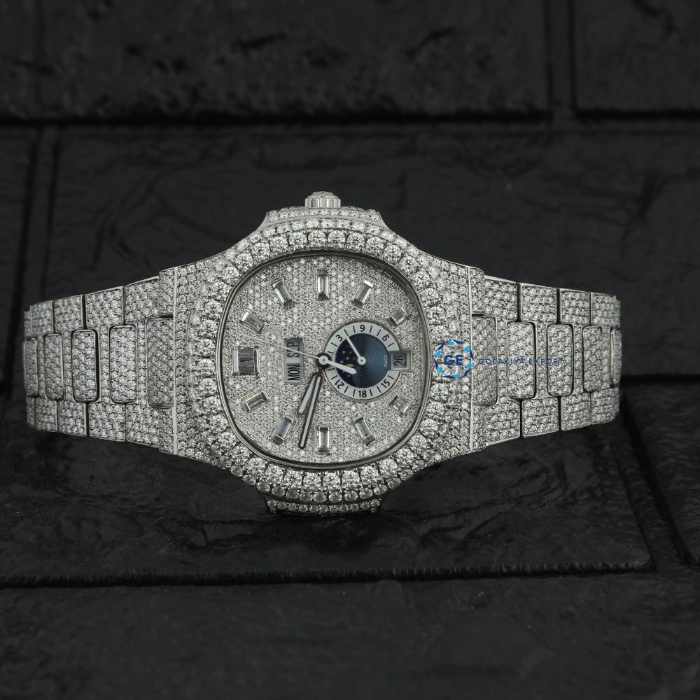 Blue Dial Iced Out Moissanite Automatic Luxury Watch