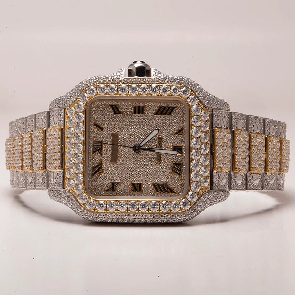 Dual Tone Fully Iced Out Moissanite Diamond Wrist Luxury Watch