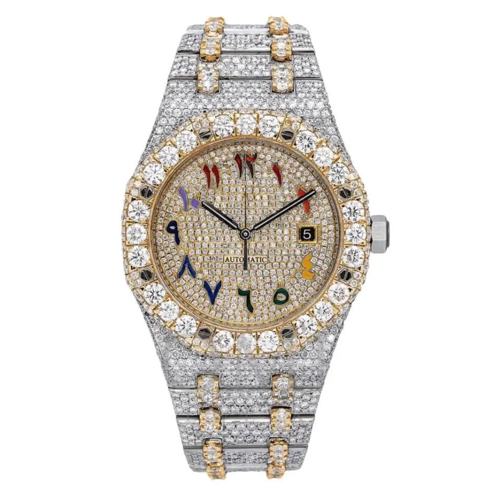 Moissanite Rain Bow Numeric Dual Tone Iced Out Watch