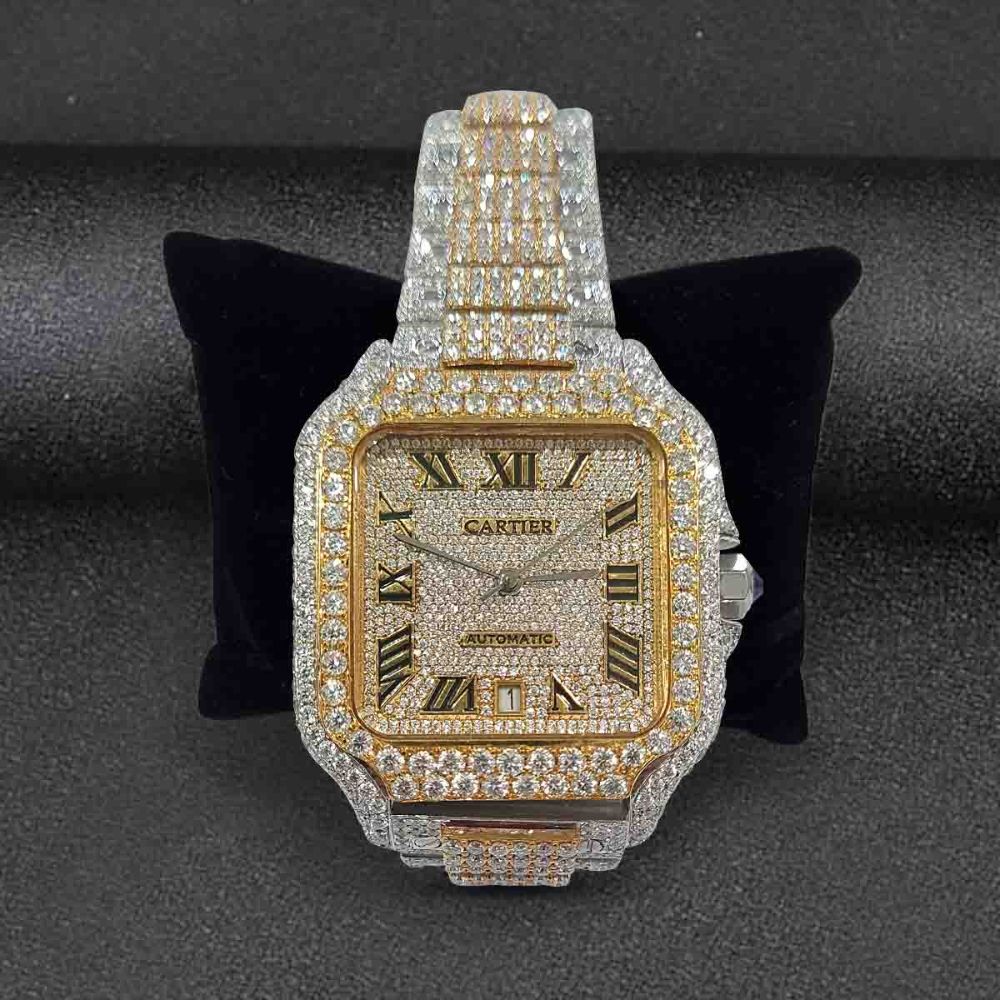 Dual Tone Fully Iced Out Moissanite Diamond Wrist Luxury Watch