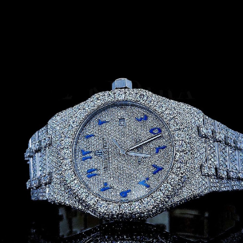 Blue Color Arabic Numeric Moissanite Watches For Men's