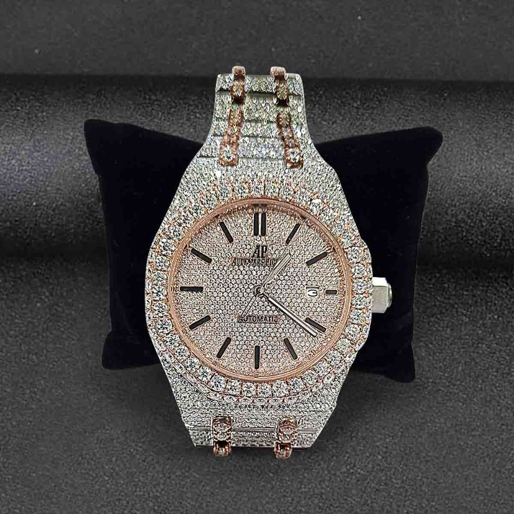 Dual Tone Automatic Rapper Style Moissanite Watch For Men's