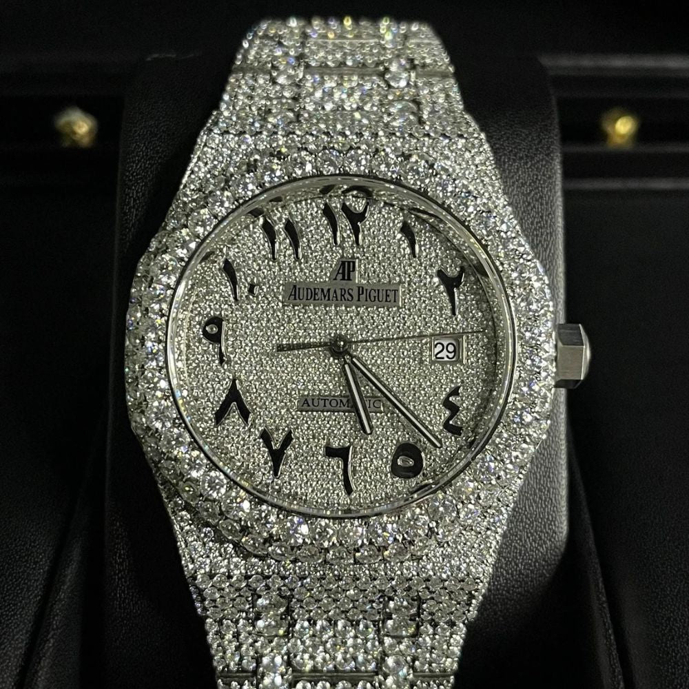 Bust Down Iced Out Arabic Dial Moissanite Hip Hop Watch