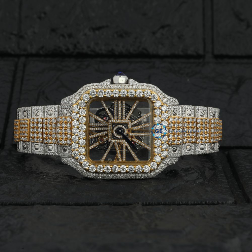 Dual Tone Skeleton VVS1 Moissanite Watch Gift For Him