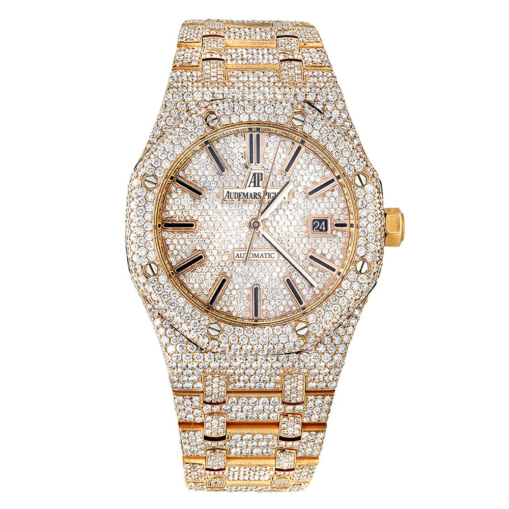 Stylish Moissanite Day Date Bust Down Fashion Watch For Men's