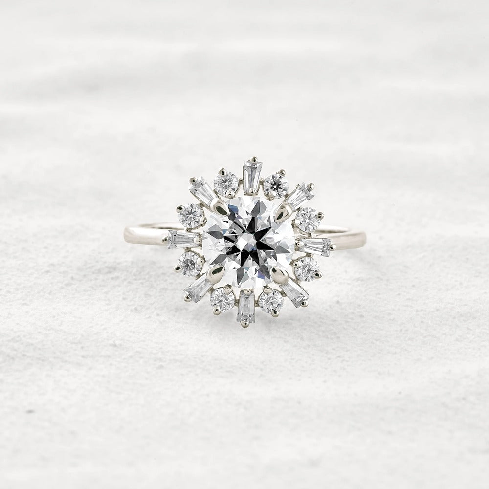Round Cut Moissanite Floral Halo Proposal Ring For Her