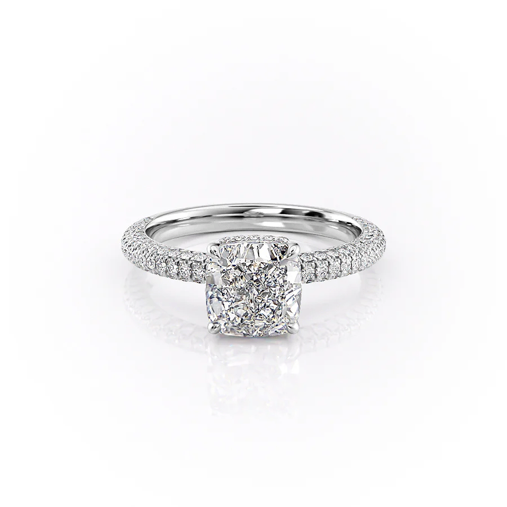 Cushion Cut Moissanite Pave Set Diamond Ring