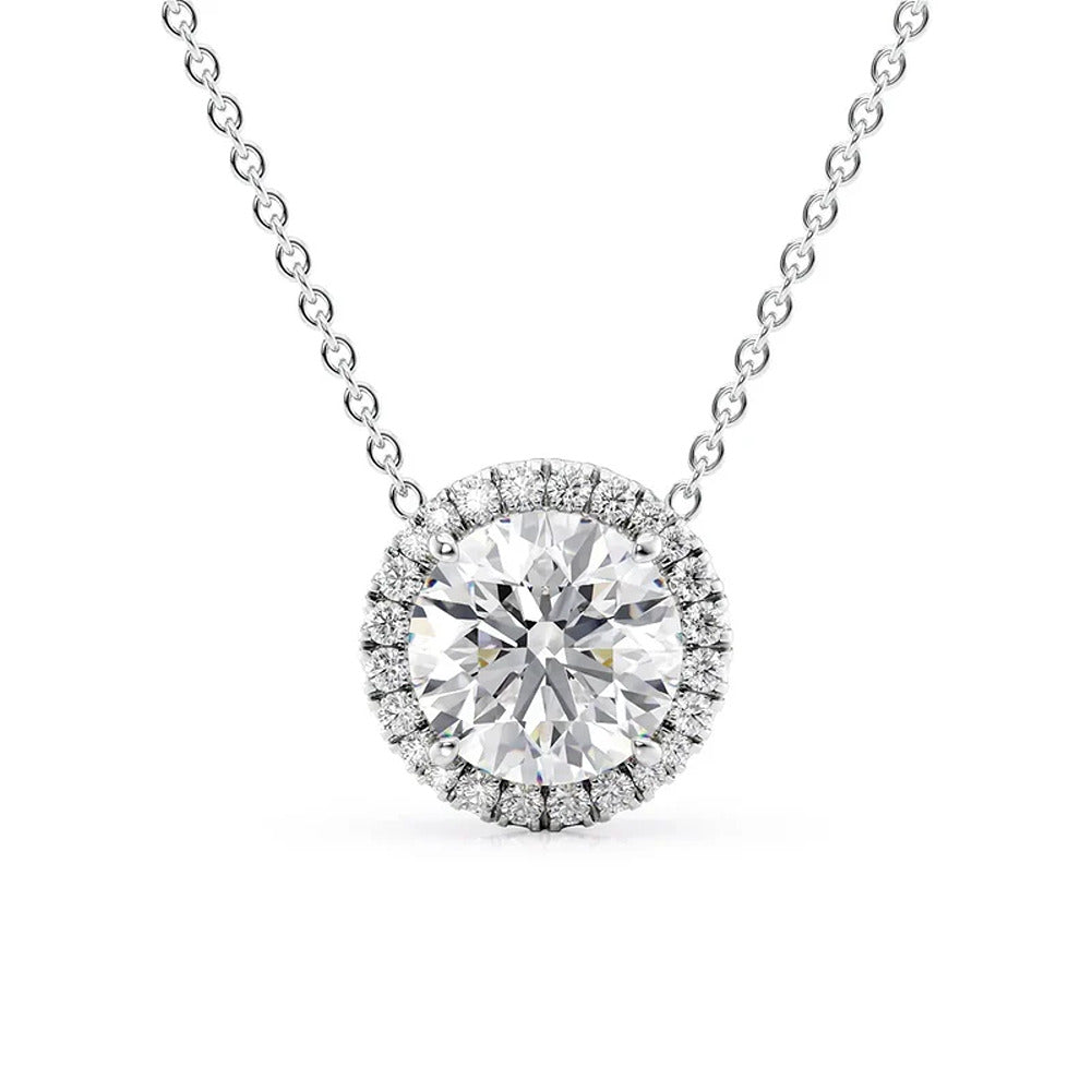 Colorless Moissanite Heart Cut Halo Diamond Pendant