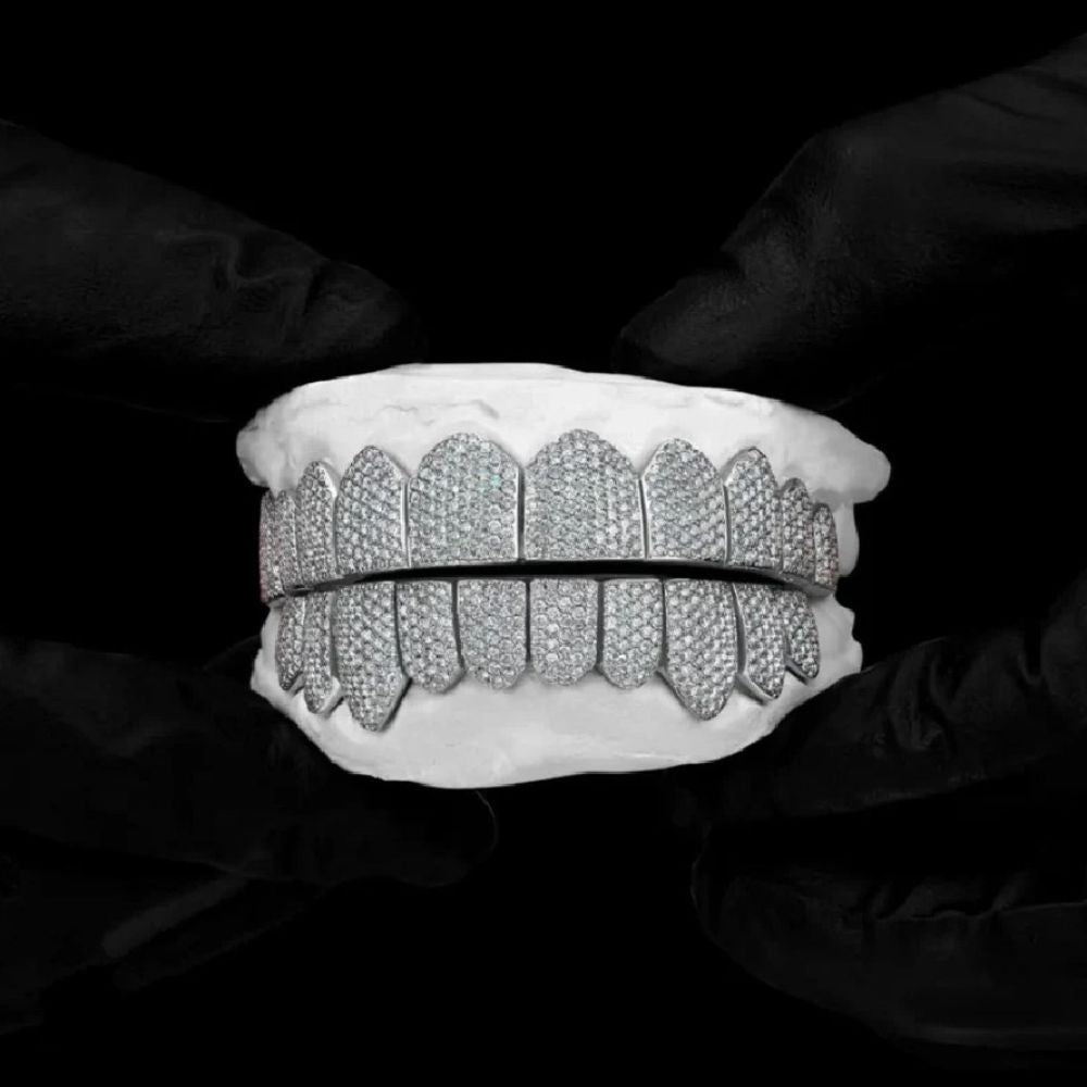 Moissanite Diamond Silver Tone Top & Bottom Teeth Custom Hip Hop Grills
