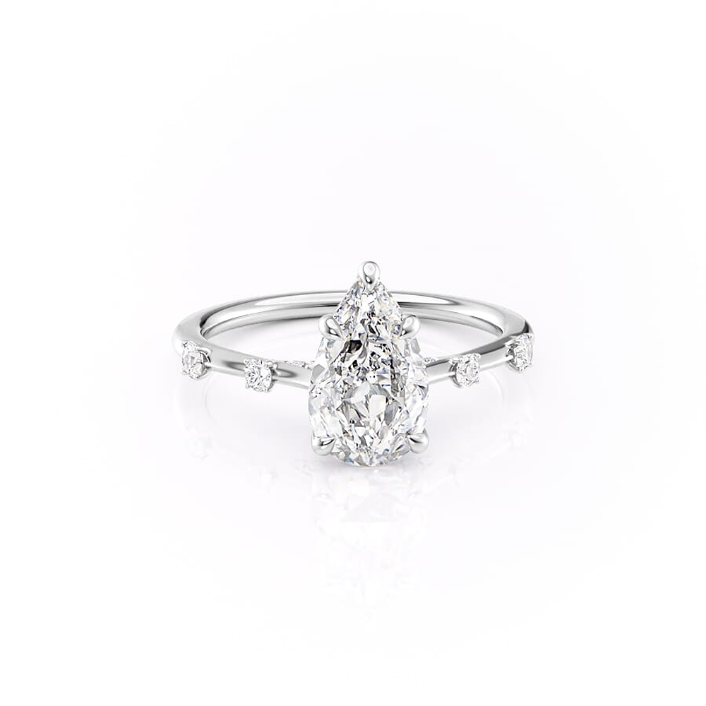 Hidden Accent D Color Moissanite Pear Cut Diamond Ring