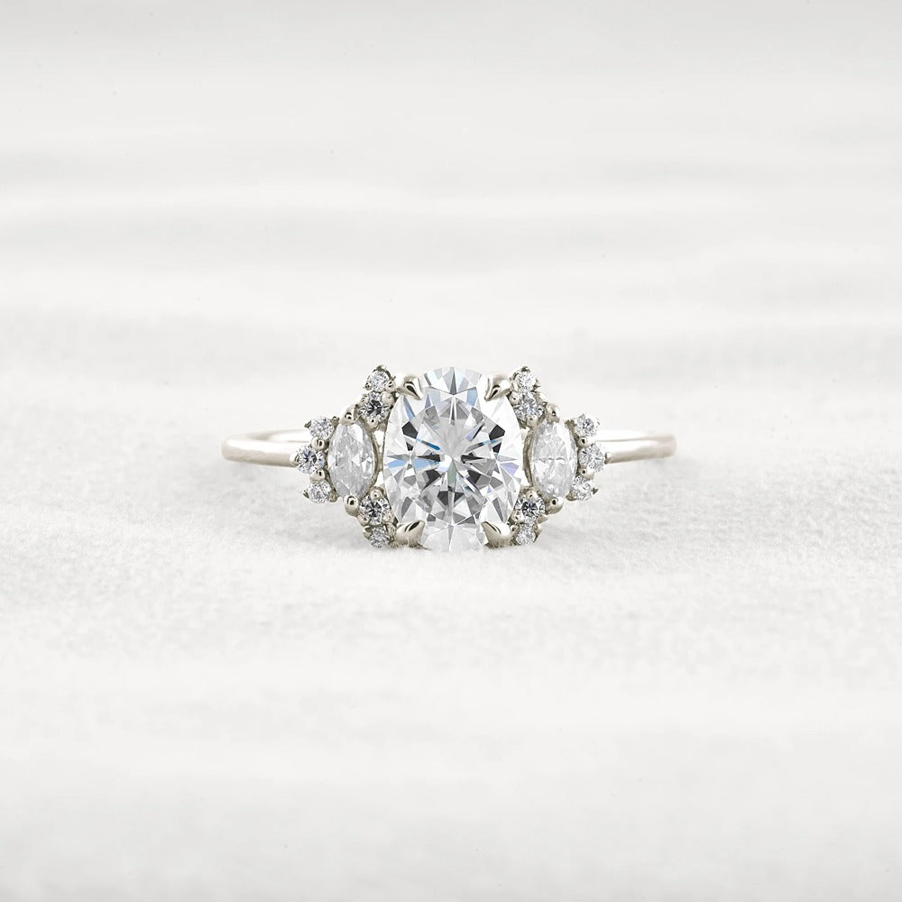 Oval Cut Cluster Moissnaite Engagement Ring