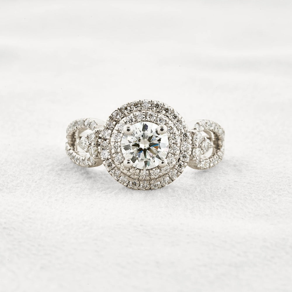 Double Halo Round Cut Moissanite Engagement Wedding Ring