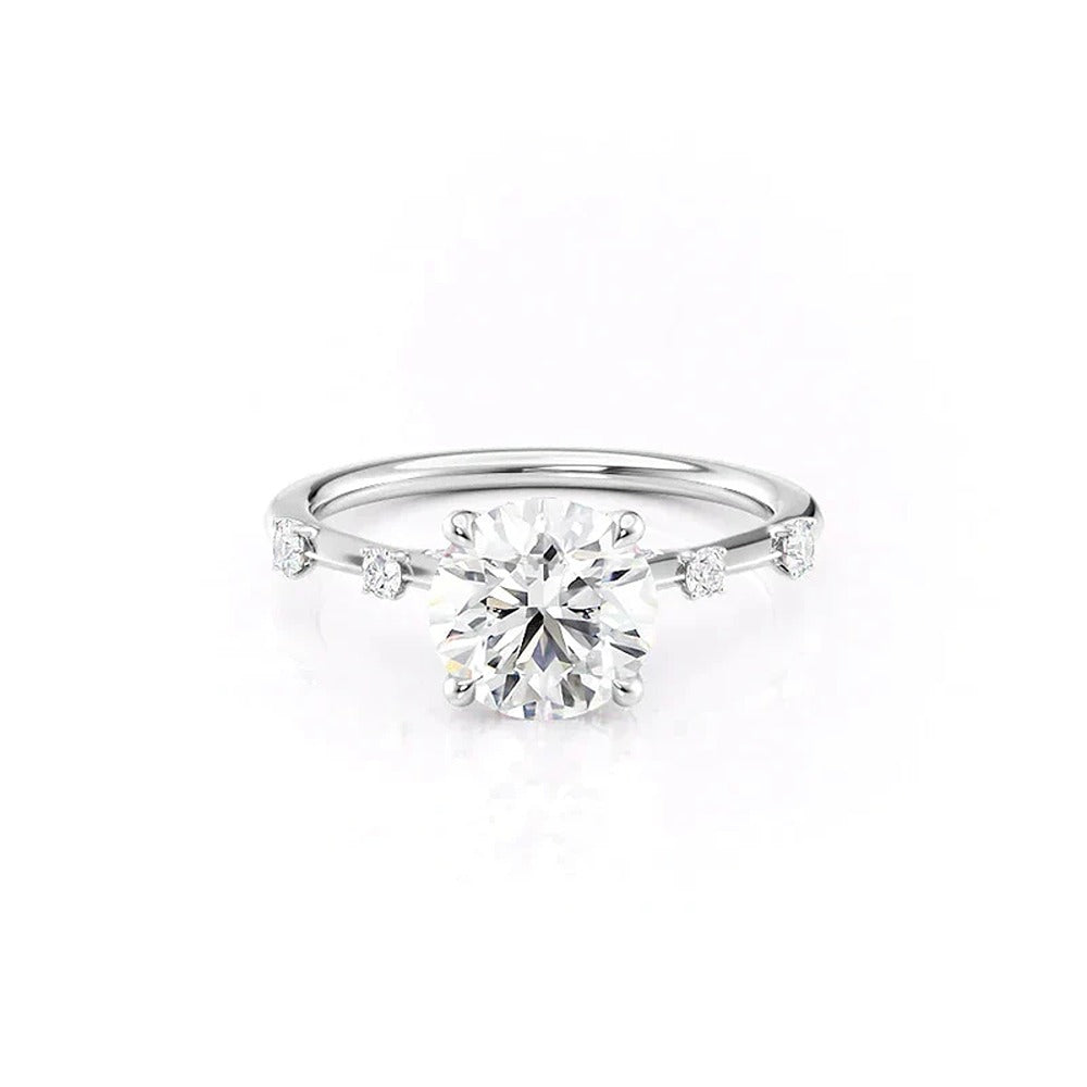 Round Cut Moissanite Unique Hidden Accent Diamond Ring