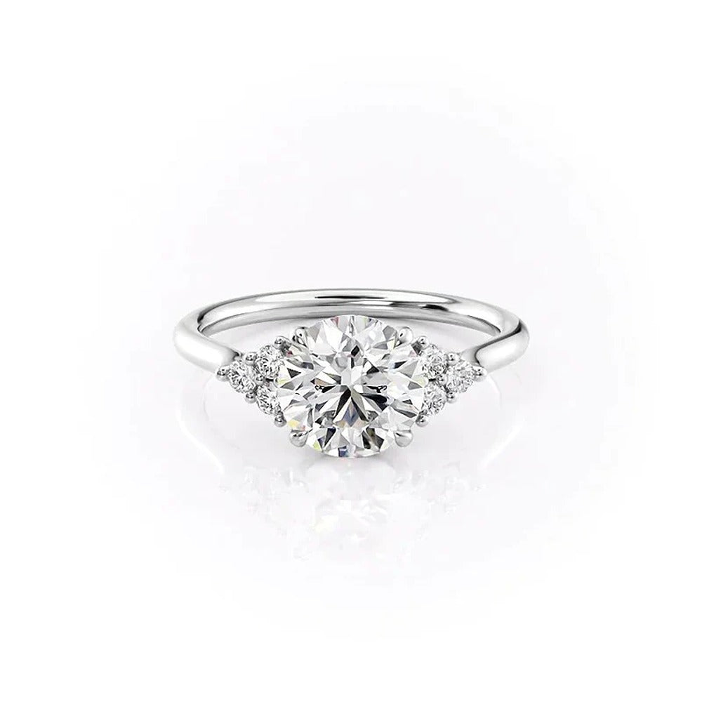D Color Moissanite Round Cut Side Accent Engagement Ring
