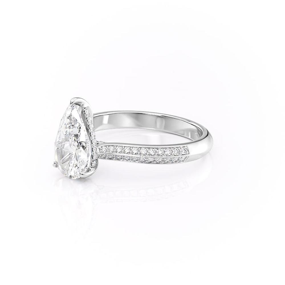Knife Shank Hidden Accent Moissanite Pear Cut Wedding Ring