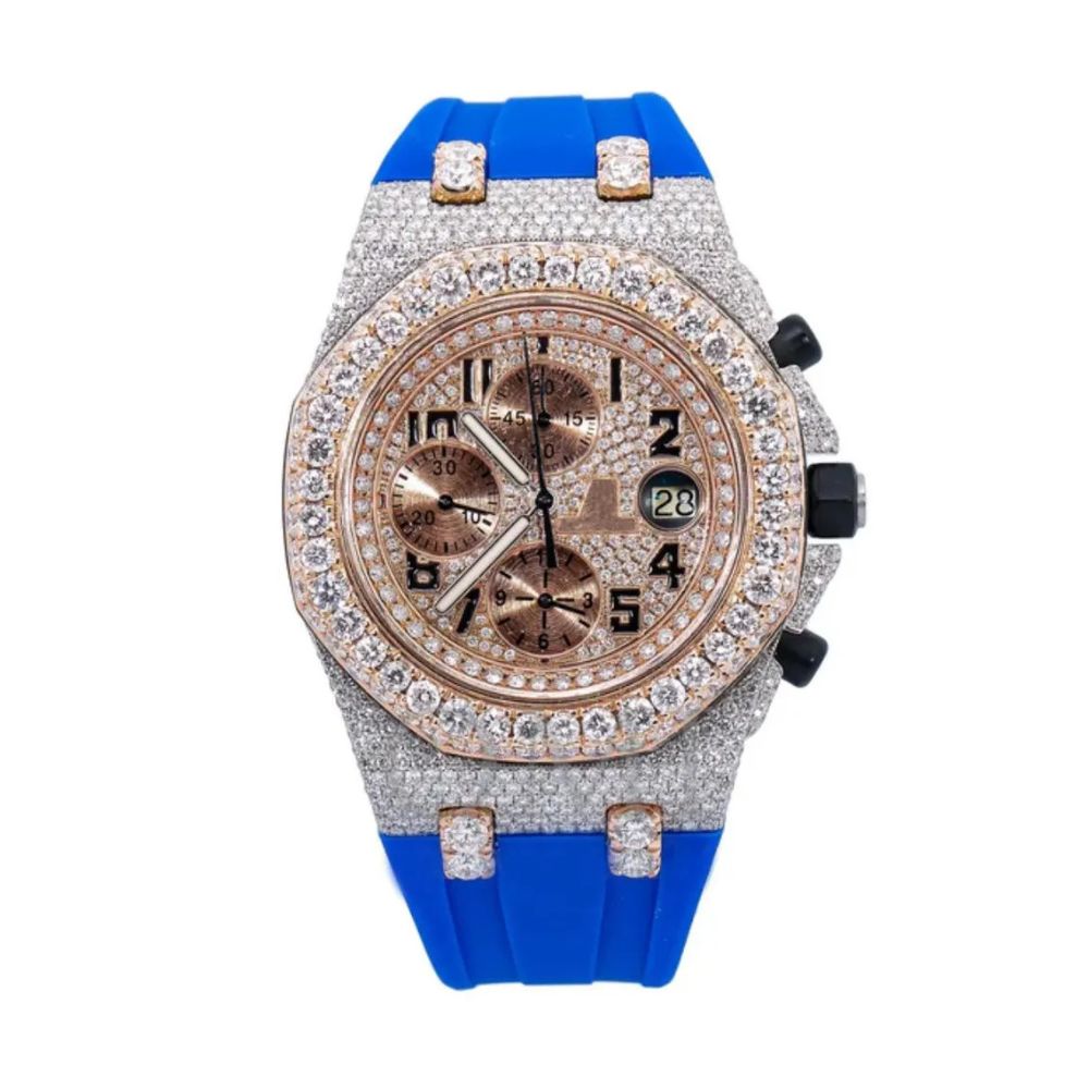 Blue Fully Iced Out Moissanite Hip Hop Stylish Watch For Men's