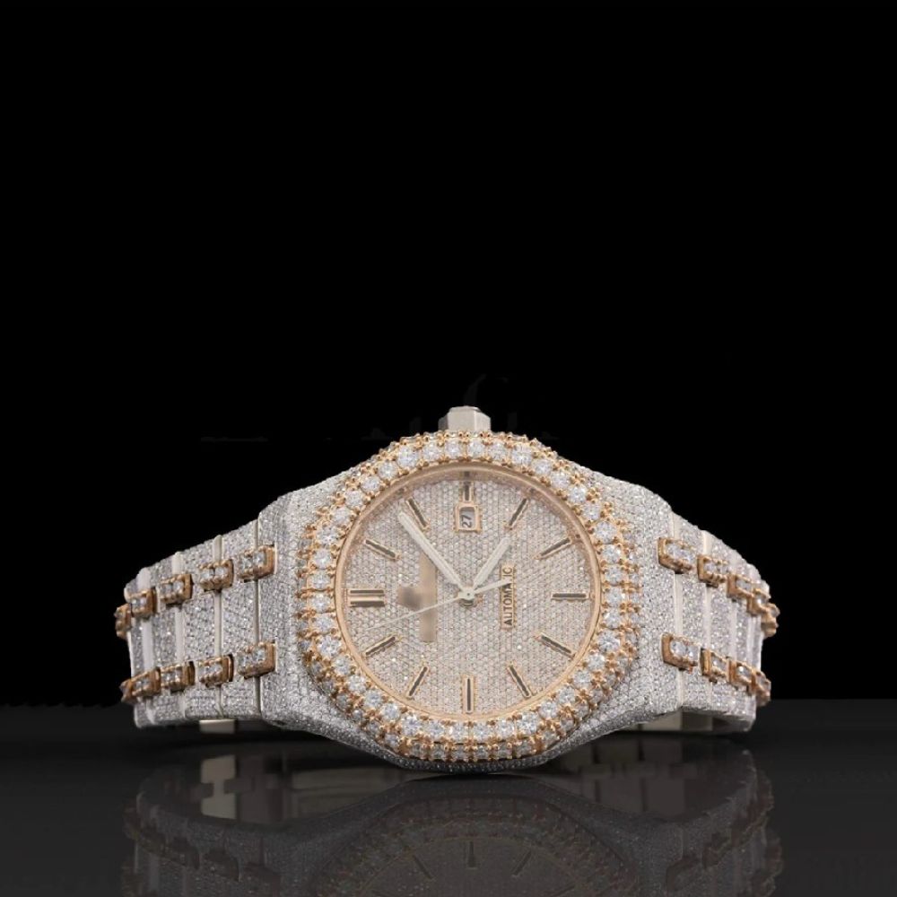 Dual Tone Fully Iced Out Moissanite Diamond Wrist Luxury Watch