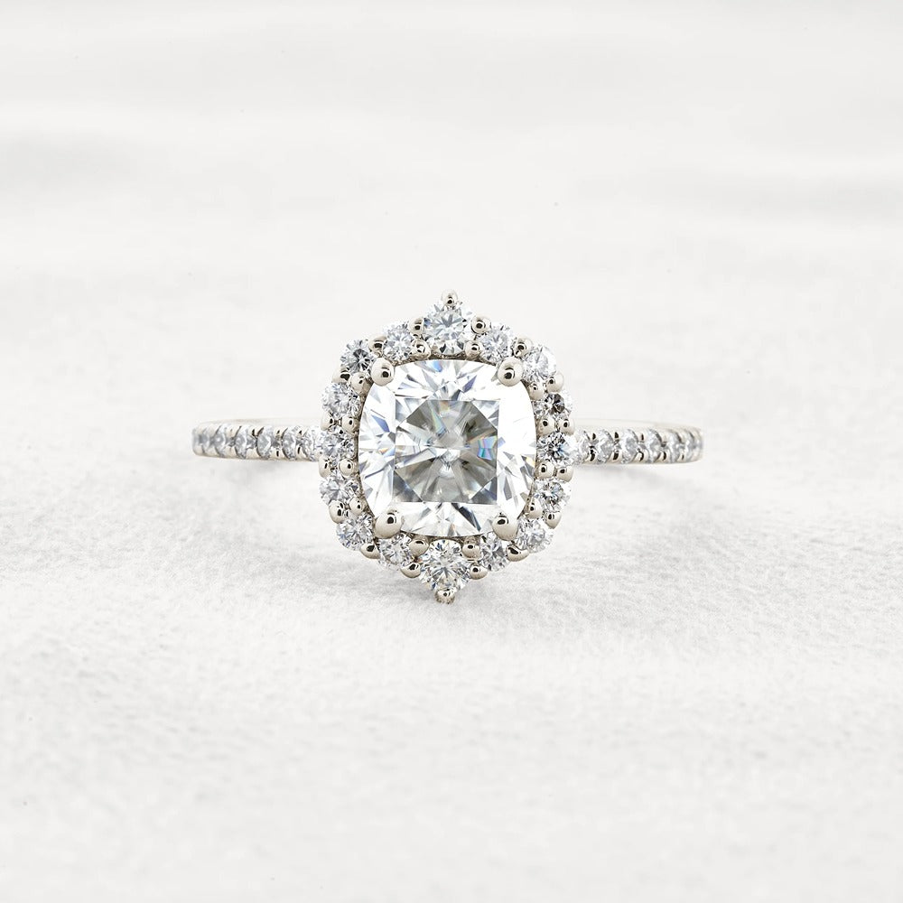 Colorless Moissanite Cushion Cut Vintage Halo Engagement Ring