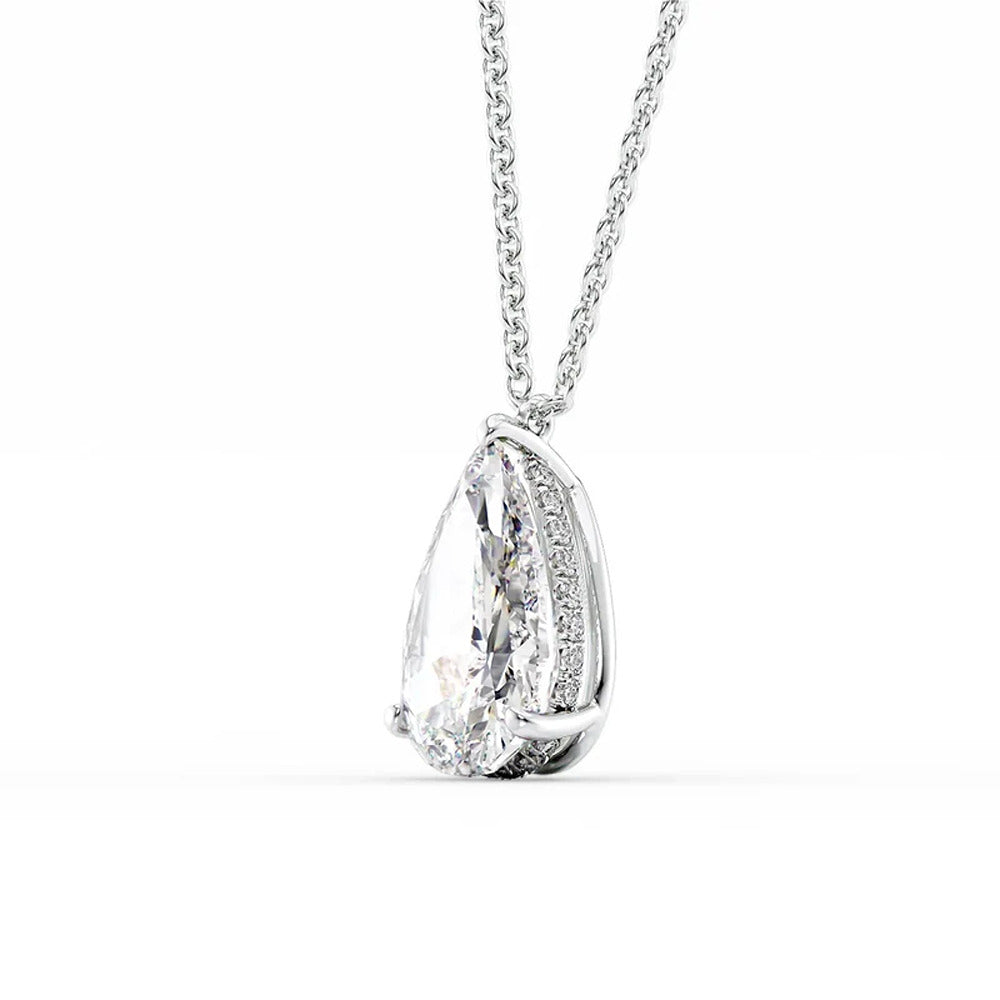 Hidden Halo Pear Cut Moissanite Pendant For Girls