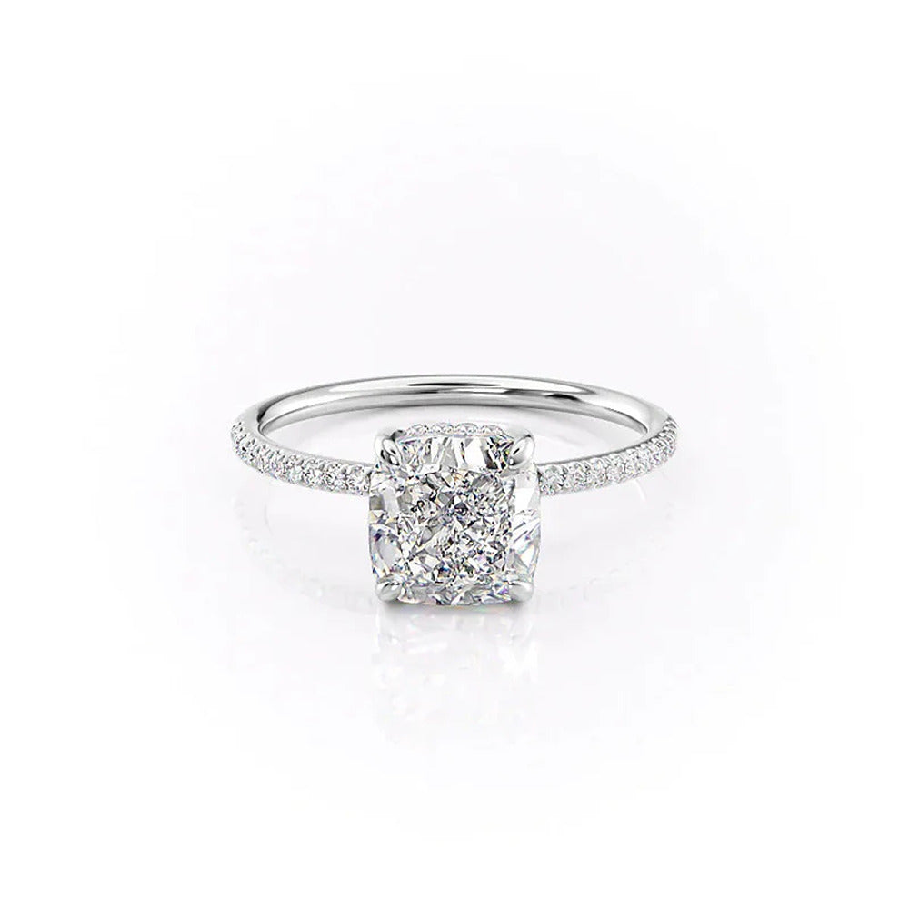 Cushion Cut Hidden Halo Moissanite Engagement Ring