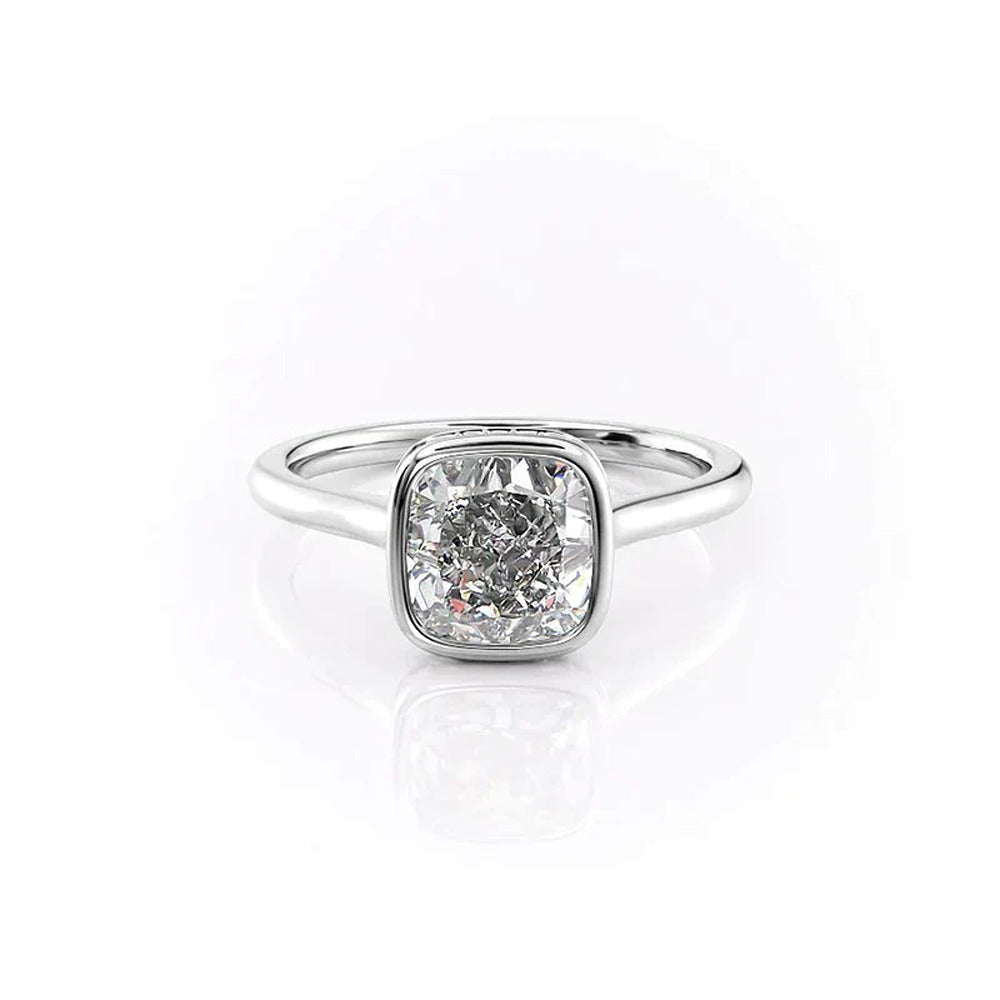 Moissanite Cushion Cut Bezel Set With Hidden Accent Wedding Ring