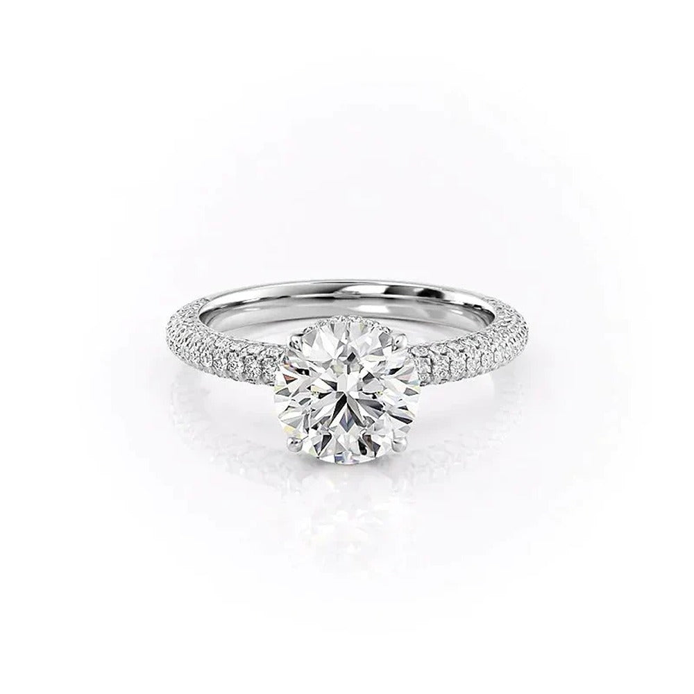 Round Cut D Color Moissanite Micro Pave Setting Ring