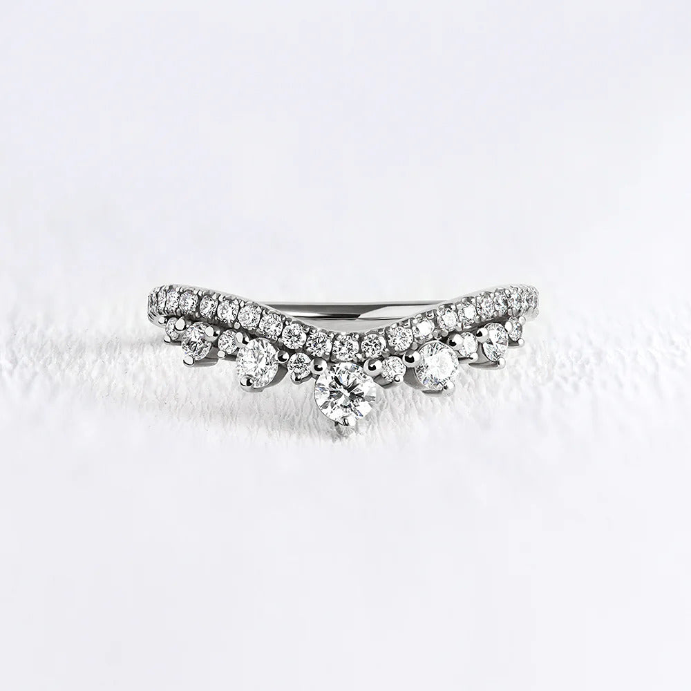 Round Cut Curved Style Unique Moissanite Wedding Band